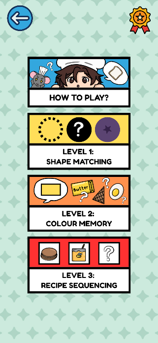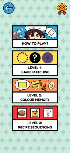 3. Level 2: Colour Memory = same concept applied as the previous levels. However, the player need to click on the ingredients that resembles the colour and shape the chef asked.